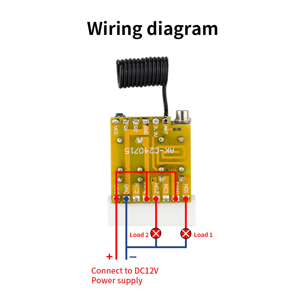 Product Model: AK-R230508 Operating Voltage: DC3~12V Operating Frequency: 437MHz (315/433MHz customizable) Standby Current: 5mA Receiver Sensitivity: -120dBm Modulation Method: FSK Control Method: Controlled by the provided remote control Dimensions and Weight: 29.9*14.2*4.3mm/2g (excluding antenna and header; including antenna and header: 2.5g)$ 0.00Buy now