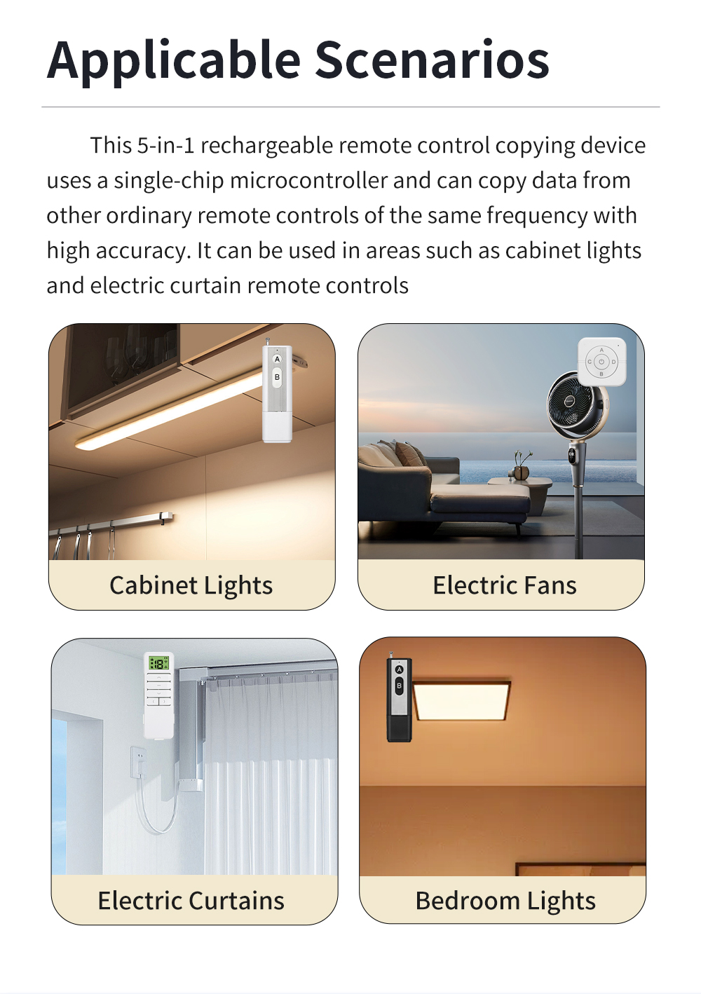 *Five channel design one remote control can replace up to five remotes saving cost and space